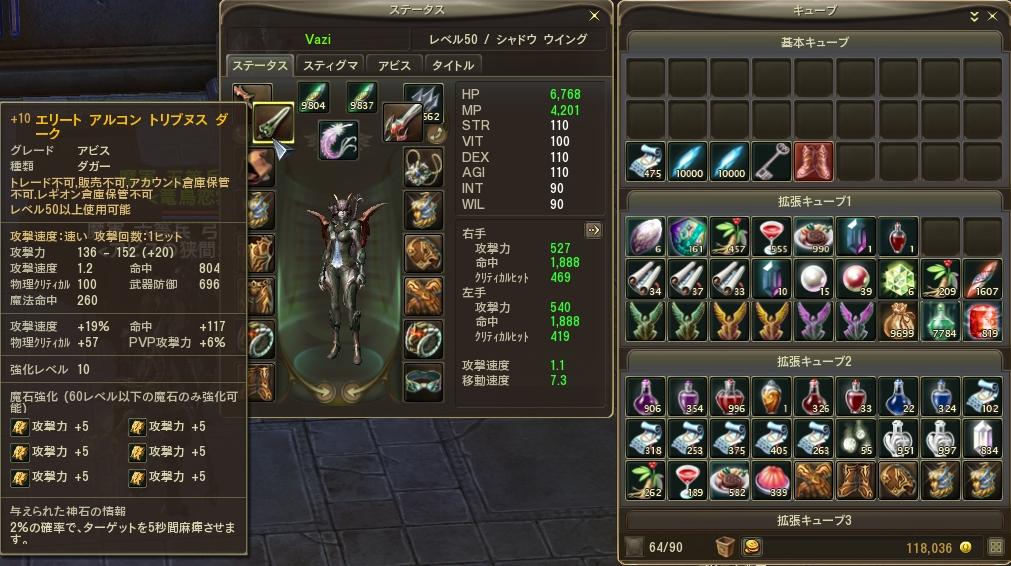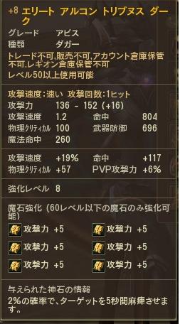 2010.08.19 Thu 02:42:49 [AION] 50ELダガー取った!ソードにしようか悩んだけど結局ダガー取りました(´ω`) [武器] <エリート アルコン トリブヌス ダーク>93 922,200 8/3 125.757⇒171.704 +68.353 8/4 171.704⇒195.987 +24.283 8/5 214.100⇒272.385 +58.285 8/6 283.803⇒340.456 +64.899 8/7 340.456⇒387.513 +45.405 8/8 387.513⇒438.688 +51.175 8/9 438.688⇒490.639 +51.951 8/10 490.639⇒509.498 +18.859 8/11 509.498⇒536.721 +27.223 8/12 536.721⇒558.237 +21.516 8/13 558.237⇒577.102 +18.865 8/14 577.102⇒818.162 +241.060 8/15 818.162⇒844.784 +28.793 8/16 846.955⇒888.658 +43.077 8/17 888.658⇒ゴール 2週間ぐらいですかね、5☆まで潜入で稼いで5☆から変身とドレドギ、下層IDで稼いだって感じです まぁーイズ魔の稼ぎ具合を考えると早いほうかも? やっぱりハイド2のあるシャドウなら潜入とかPKで稼ぐのが一番いいですな1.9からデイリークエで1PTとか来る時あるのでDPハイドなり回復の結晶なり奥の手を用意してないとロストで大変なことになりますがwww なんだかんだでハイド2は優秀だと思います自分のタイミングで相手を襲えるというのはやっぱり強いです。 DSって何かバランスがあんまり好きじゃないけど赤く光って格好いいです(*´Д`)ハァハァ とりあえず強化が成功しないのでSDでしばらく頑張ります・・・ 魔石で70個消費したのも痛かったけど+3⇒+4で73石で2回失敗、80石で失敗で3回失敗してしまい補助剤が買えないというところまできてしまい所持金が50万ぐらいになってしまいました( ´ー`)フハハ まぁー運がないのは今日に始まったことじゃないのでチマチマ強化していけばいいかなと思ってます +10まで頑張れたらDSにして速度に感覚を慣れさせてMCを華麗に出来るようにせねばっ! 何かいいお金稼ぎないですかね・・・本当最近金策がきついです Orz おまけ 最強の9等兵!!!