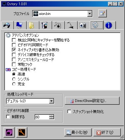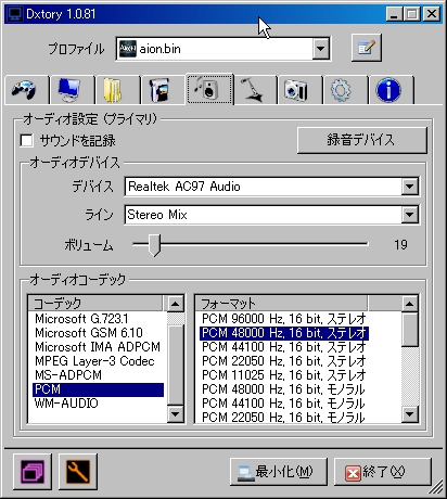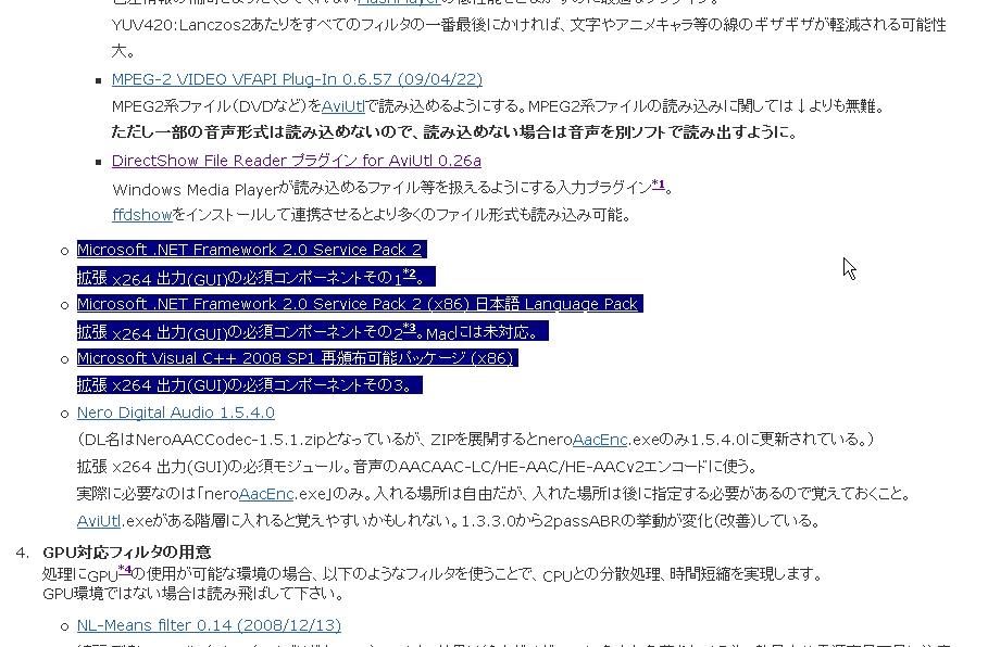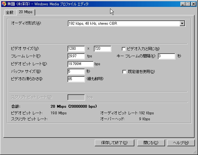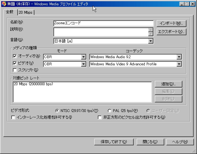 2010.06.03 Thu 11:44:07 [日記] エンコード(´ω`)まぁーこないだの続きみたいな物。 とりあえずZoomeにうpすること前提に書いていきたいと思います 流れとしてはムービーメーカーで編集&エンコード⇒さらにAviutlでエンコード⇒Zoomeにうpって感じです あらかじめダウンロードしておく物 Aviutl264ニコニコ動画まとめwiki⇒http://nicowiki.com/aviutl_h264.html まずこちらのサイトから手順⇒1、準備と進んでいただいて この3つをダウンロードしてインスコしてください、これがないと起動できないものが後々出てくると思うので最初にインスコしとくと便利だと思う。 次に Windows Media Player 10以上⇒http://www.microsoft.com/japan/windows/windowsmedia/download/ Windows Media エンコーダ⇒http://www.microsoft.com/japan/windows/windowsmedia/download/encode.aspx AviUtl本体⇒http://spring-fragrance.mints.ne.jp/aviutl/ 最新バージョンでいいと思うけどたまーにプラグインのほうが最新のやつに対応してなかったりするので注意してくだしあ DirectShow File Reader(入力プラグイン)⇒http://www.tenchi.ne.jp/~yoko/aviutl/index.php?DirectShow%20File%20Reader%20%A5%D7%A5%E9%A5%B0%A5%A4%A5%F3%20for%20AviUtl aviutlのプラグインはaviutl.exeがあるフォルダに「Plugins」という名前のフォルダを作ってそこに解凍したファイルをコピーして使います。 黒ベタフィルタ(編集プラグイン)⇒http://cwaweb.bai.ne.jp/~icchan/file/plugins/ こちらのbeta.zipってやつです ダウンロードして解凍したらファイルの中身はaviutl.exeがあるフォルダに移動してあげてください x264 詰め合わせ(出力プラグイン)⇒http://seraphy.fam.cx/~seraphy/pg_mod.html 新しいの色々出てるみたいだけどうちが使ったやつは old/⇒x264.748.release4.rarです新しいやつでも出来そうですがいちおうこちらで説明をば(´ω`) neroAacEnc.exe⇒http://www.nero.com/jpn/downloads-nerodigital-nero-aac-codec.php 解凍した中からneroAacEnc.exeをaviutl.exeと同じフォルダにコピーする プラグインのところじゃないので注意してください いちおう必要なのはこんぐらいだと思います、Aviutlのプラグインは結構色々便利なのが多いので興味ある人は自分で探してみるといいかもしれません。 ムービーメーカーでエンコードするための下準備 ムービーメーカで編集した動画をエンコードするための下準備をします まず新しいプロファイルを作らないといけないので C:Program FilesWindows Media ComponentsEncoderのフォルダにあるWMProEdt.exeってやつを起動してください こんなウィンドウが出ると思うので 名前(N):適当にどうぞ メディアの種類 オーディオ(A):モードCBR、コーデックWindows Media Audio 9.2 ビデオ(V):モードCBR、コーデックWindows Media Video 9 Advanced Profile 対象ビットレート:追加を押して20Mbpsでおk ビットレートを決めたらこういうのが出るはず ビデオサイズ:1280x720に変更してください フレームレート:29.97fps あとは保存して終了、デスクトップあたりにでも保存しておくといいです デスクトップに保存したプロファイルをムービーメーカーに読み込ませないといけないので C:Program FilesMovie MakerSharedProfilesフォルダに保存しておいたプロファイルを移動してください これでムービーを保存する時に詳細選択の表示の一欄で一番下あたりにプロファイルした名前があるのでそれを選択してムービーを保存出来るようになります ムービーメーカーでの編集は使って慣れてください!PCそれなりに慣れてる人なら出来るはず!! 作った動画の保存の仕方はファイル⇒ムービーファイルの保存から マイコンピューターを選んで次 適当にファイル名を決めて保存する場所を選んで次 ここで先程プロファイルしたのが下に出てればおkです、僕の場合「2Zoome」ってなってます その他の設定からプロファイルしたファイルを選択して次を押して保存開始です 物によっては結構時間かかると思うので寝る前とかにやるといいかもしれませんね えー次にムービーメーカーで保存したファイルをZoomeにうp出来るようにする作業です ムービーメーカで保存した動画はwmvなはずなのでmp4にしないといけません。 ここではAviutlを使います(´ω`)ノ x264 ACC MP4の作り方 上でダウンロードしておいていただけたと思うので x264.748.release4.rarを解凍していただいてまずフォルダの中の「pthreadVC2.dll」をC:WINDOWSsystem32フォルダにコピー auoというフォルダがあると思うのでx264gui.auoとx264gui.iniをAviutlのPluginsフォルダにコピー cliフォルダからx264.exeとx264afs.exeをAviutlのPluginsフォルダにコピー vfwフォルダからx264vfw.infを右クリックしてインストールしてください Aviutlの設定 まずAviutlを起動してファイル⇒環境設定⇒入力プラグインの優先度の設定で 「DirectShow File Reader」が一番上にくるように並べ替えてください 次にファイル⇒環境設定⇒システムの設定で画像最大サイズを幅1280高さ1280に設定してください これが終わったらAviutlを再起動してください(´ω`) Aviutlでエンコード 4:3に編集してMP4で出力します。 メインウィンドウにムービーメーカーで作った動画WMVをぶち込んでください 設定⇒黒ベタ追加ファイルの設定を押してパネル