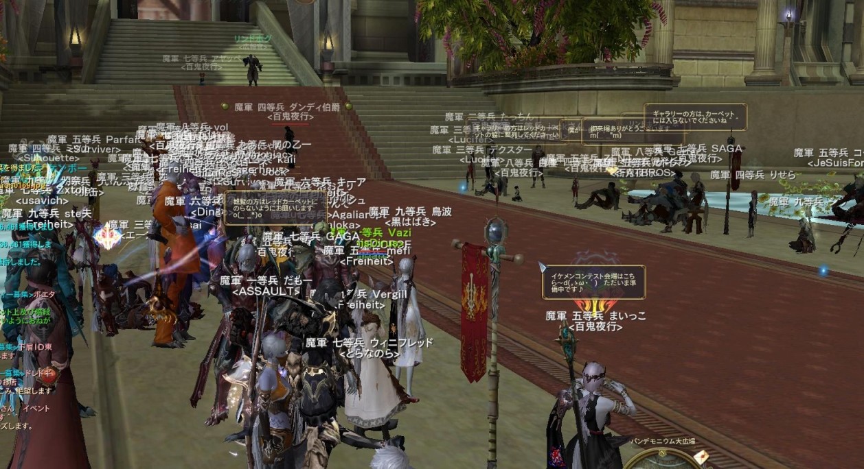 PR 2010.03.06 Sat 19:10:35 [AION] イケメンコンテストとか身内ネタとか美少女コンテストに続き、百鬼夜行の方々がイケメンコンテストをやっていたので覗いてきました ↑↑↑ここがイベント会場のパンデモニウム 思ってたよりギャラリーいっぱいでしたw コンテスト主催の百鬼夜行の方々、ダンディさん初めてみたけど見た目もやっぱダンディだった。 ずっとハイドして視姦してました、サーセン( ^ω^) エントリーしたイケメン達!↓↓↓ 撮り残しないよな!?きっと大丈夫、たぶん大丈夫!! 載ってねぇーぞ!!って方いたら本当ごめんなさい Orz みんなセンスいいですなぁー、ブルーチーズさんとか海賊っぽくて格好良いし ピンクダークの少年さんとか厨っぽいの大好きな俺にはたまらない・・・'`ァ,、ァ(*´Д`*)'`ァ,、ァ ユザーイベントなのにFSのミヌイアさんもいらっしゃってました。 [Unknown] !!!? 妖精さんがいたよ・・・・w 優勝は誰だったんっすかね!? 24時半からちょっと勲章の放流があったっぽかったので委託のほうにいたので結果がわからないw きっと百鬼夜行さんのほうで動画上がるっぽいのでそれみてくださいwww こういうユーザー主催のイベントはいいですねぇー鯖が盛り上がりますわ 百鬼夜行の方々、イベント主催おつかれさまでしたっ! 身内ネタ↓↓↓ 龍ELのところに沸く亀裂待ってたら、インドラ要塞行きの亀裂が沸いたのでノリでいってきたw 初めて中に入りましたが本当に要塞みたいになってるんですね、なんにもでなかったけど煮え血一個だけしか出ませんでした\(^o^)/ 孔明の罠↓↓↓ 通路が欠けてて気づかないで落ちたてMobにフルボッコされたマヌケなシャドウの図。 VCなんか最近やっと慣れてきたかもしれません 最初めちゃくちゃ恥ずかしくて全然喋れなかったけど、やっと少しだけ喋れるようになったかも 恥ずかしいのは変わらないし、ドモリ症とかひどいけどねwwwwww 前のレギの人とのVC楽しかったです(´ω`) Kくんは同じ歳らしいけど喋ってるとすごいしっかりした人みたいに思えました、とても同じ歳とは!!なんか振ってくるネタも古いしww レギマスとかする人はやっぱどこかしらしっかりしてますよね そしてなんかずっとゲップしてた、5分に一回ぐらいゲップしてた K子さんといつか直結するらしい。 K子さんはゲーム内と変わらず面白い人でした、KくんとK子さんの絡みは聞いてて面白すぎるw そして直結厨らしい。 Jさんはすごい良い人でした、キュアやる人ってやっぱリアルでもいい人多いのかもしれませんね きっとリアルでもダンディーでいいパパに違いない、声もハスキーで格好良かったしw そしてラーメンのすする音が豪快だった。 Hさんは何か可愛らしい声の方でした、男キャラ使ってたんで男性かと思ってたのは内緒(´ω`) そして料理が好きらしい、好きらしいけど料理は・・・ゲフンゲフン! Sさんはマイク買おう!