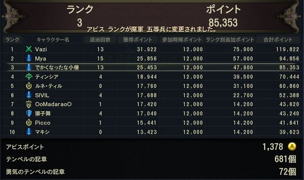 2011.10.19 Wed 18:08:05 [AION] あらまぁ・・・2011.10.19 Wed 08:33:09 [AION] 二重課金昨日速攻インして課金したもんだから知らない間に二重課金になってたVaziです、おはようございます まあ、すぐメールしてカイモ返品って感じで対応してもらいました 何か戻ってきてるのがちょっと多いような? 合計で13,800カイモ戻ってきてるんですが7800+3000で3000円多いような・・・このカイモシステム付与ってなんなんだろう、お手数おかけしました的なサービスなんっすかね? よくわからぬ・・・またメールしたほうがええんやろか そしてこれ 「返品したのでカイモとパール確認よろ^^」って運営さんから返信メールきたけど二重課金になったほうのチケがまだ予約に表示されっぱなしっていう まあ、別になおしてくれなくてもいいんですけど デュフフフwwwwww すごい悩んだけど・・・・すごい悩んだけど!!!!!いちおうメールしておきました、別に修正してくれなくてもいいです(´ω`) 2.7きましたね、闘技場結構面白いです シャドウの混沌は立ち回り方が大事なのかなって思いました、プレイヤー倒そうってばかりに集中するとすぐ死んじゃいますし死ぬとバフ全部消えるんで立て直すのがすごいきつい なので死なないように動くのが大事な気がしますね とりあえずアンチさんと行った一回目の混沌、演習で3回ぐらい行ってからの本番だったので結構いい感じに動けた気がする 二回目、知らぬ間に兄さんがいたw 妙にいいタイミングでキャプってくる盾がいるなって思ったら兄さんでした(´ω`) あと二人いたけどSS取る前に抜けちゃった とりあえず混沌は立ち回り、ウォークハイドを使って卑怯に立ち回るのがいいと思った 空中戦はリムーブ使ったログを見て切れたら襲うお仕事。 孤独も少しやりましたが一度負けるとすごいキツイ気がする、加護いちおう付いてるけどバフとか使うと切れちゃうみたいです・・・ シャドウの場合死んだらランが切れてしまってCT明けるまで足遅いままだから相手が遠距離職とかだと結構無理ゲーなんじゃないかなっていうのが感想です 牛みたいのいるところのMAP狭すぎるねん!一回死ぬとリスキルされ放題じゃねーか!!おかしいだろ! FPSみたいに小規模、中規模、大規模ってMAPとかモードみたいのあればいいんだけど もうちょっと死んだ後をどうにかしてほしいって感じですかね・・・・ あ、昨日は寝落ちしてごめんなさい Orz あとパドマシャ僕はいけますっ!!