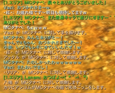 PR 2012.01.08 Sun 01:46:45 [AION] タナベさんいい人やった1月4日だったかな?何かタナベさんがプライベートでイズ魔に遊びに来てたみたいです 聞いた話だと会社からじゃなくて自宅からのインだとかなんとかww 前のイベントで使われたノーマルキャラのほうでしたね、ヴォカ+10のヒーローアクセにテンペ2付与の装備のほうです・・・うる覚えですが(´ω`) プレートのテンペ装備は格好いいので好きです、レザーはなんかミニスカっぽくて嫌いだわww なんかコサックダンス踊ってるみたいですね。 装備とか消耗品は支給されてて持ってたみたいなんですがキスクが支給されてないらしく、何故かうちのレギのフォースに拉致られたタナベ氏 ノリでインギス攻め込もうってなったんですが、まあーひき殺されましたね() ついでにキスクも壊されて1デスで帰ることになりましたとさ(´∀`) 前にキスクがどうこうって話しましたけども、結局どっちもどっちで壊されるのが普通ですねww ここからがちょっとした笑い話なんですがNCから支給されたキャラ、何故かディーバになってないらしく・・・・復帰したらイスハルゲンでしばらくディーバになるためにクエやってたみたいですわwww ゲルク入場クエとかももちろん終わってないのでその辺もやってましたね、しばらく戻ってこなかった理由はこれです インギス攻めてからしばらくしてから天がゲルクきてるってことでタナベさんを一緒に戦わせてもらいましたが、まあーめちゃくちゃ狙われるわけでかなり顔真っ赤になっていらっしゃったみたいです プライベートでもキャラは魔族らしいですがやっぱこういうノリは魔族なんだなーって思いましたねww 仮にも運営の人間がこんなこと言っちゃって大丈夫なのかしらwwwwwまあ、面白いからいいけどwww いやぁー結構面白かったですね、また機会あったら来てほしいものです(´ω`) ニコ生じゃ結構はっちゃけてますがゲーム内じゃ落ち着いた感じですごい好印象でしたね、普通にいい人でしたwwwww 中身が本当にタナベさんかどうかは分かりませんがこういうイベントが時々あるとAIONライフも楽しくなりますなぁ(´∀`) 最近どーもやる事がマンネリ化しすぎてモチベ下がり気味だったので久々に面白かったです。